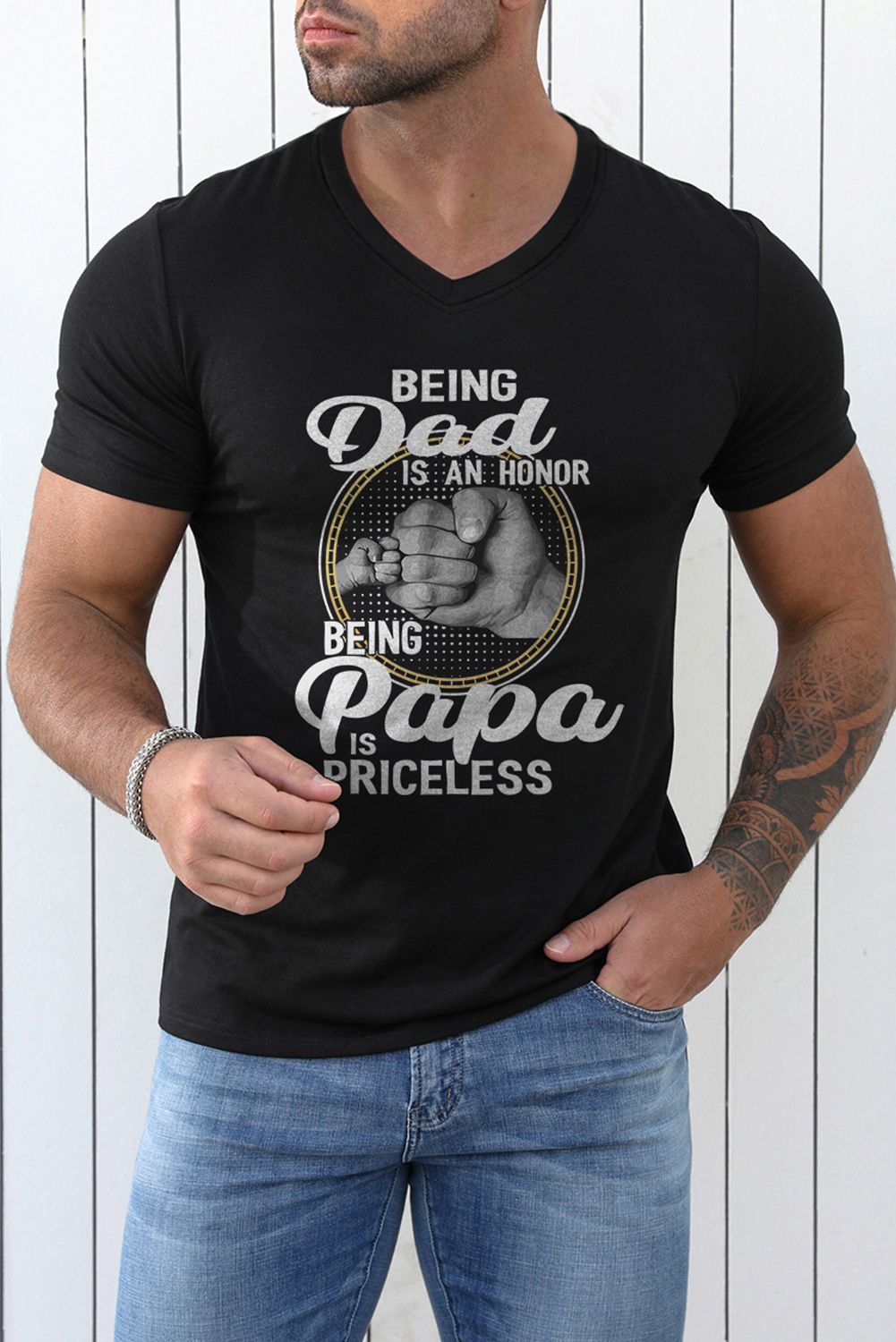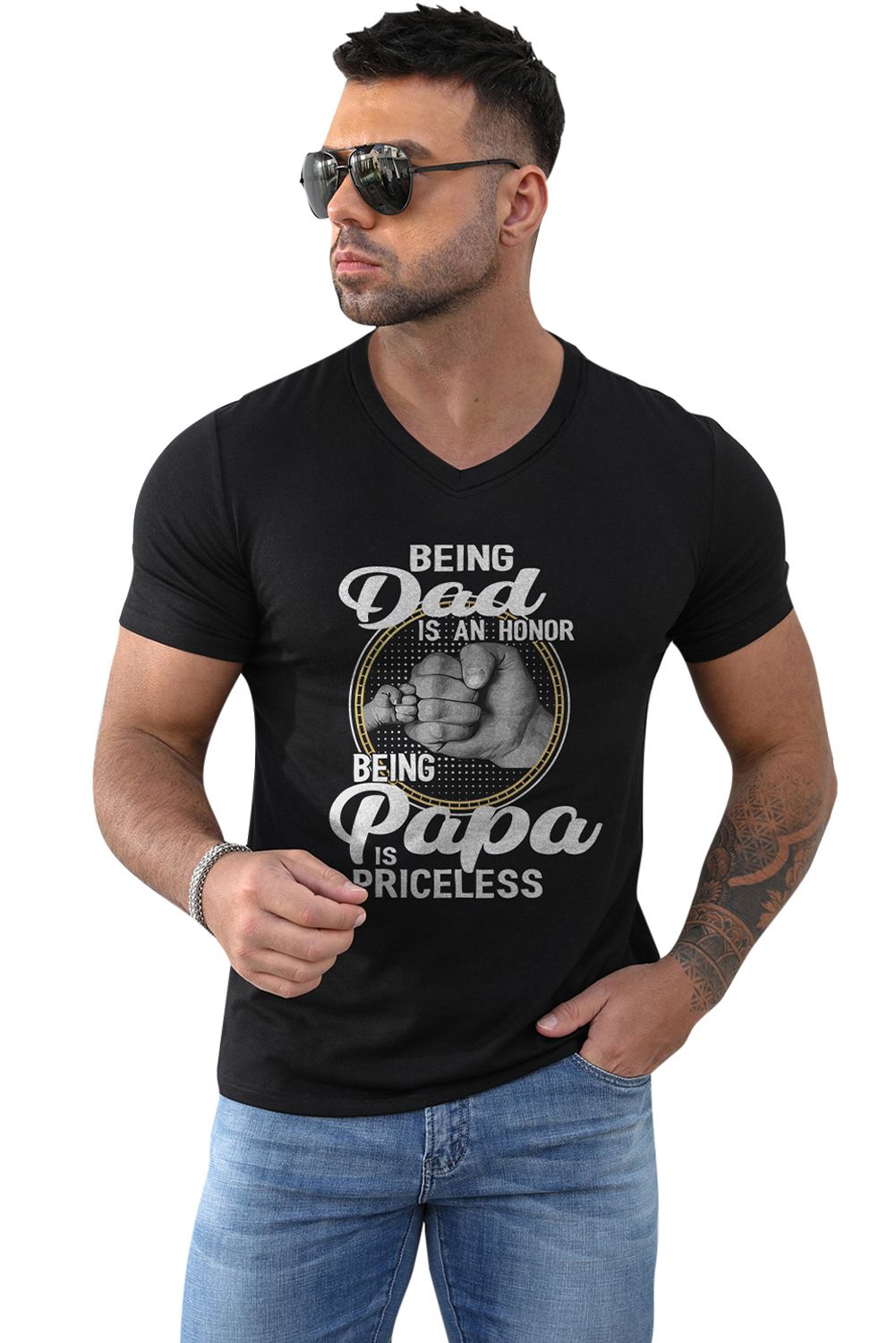 Dad Papa Letter Graphic Print Men's V Neck T Shirt