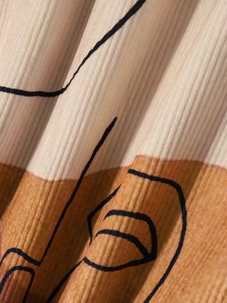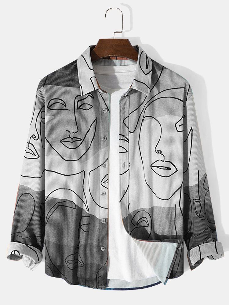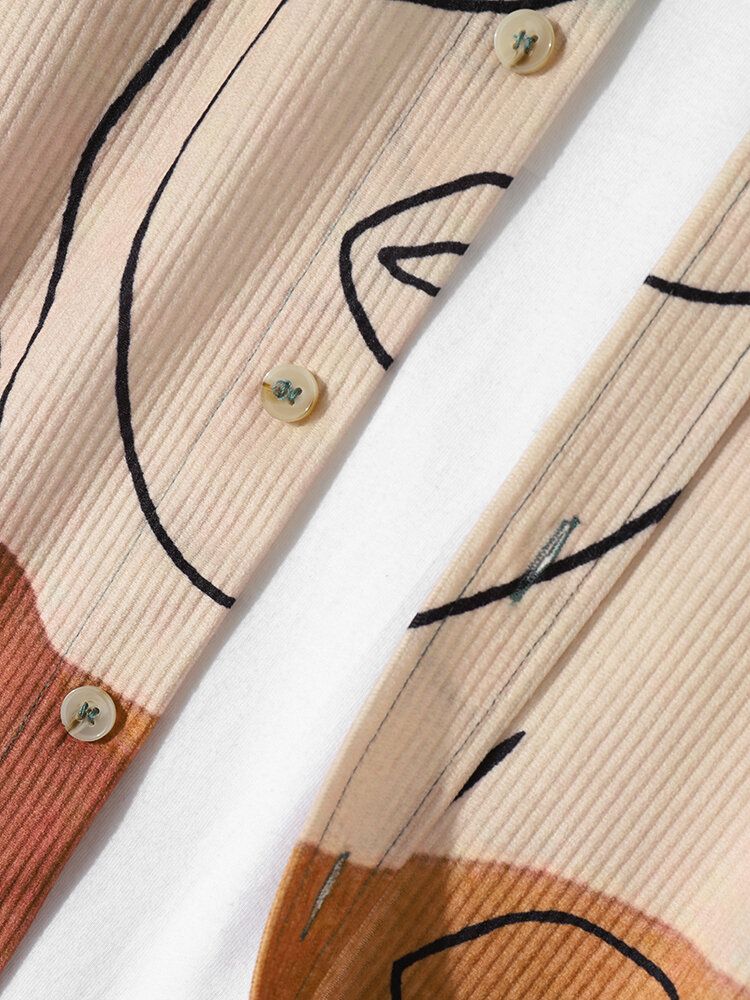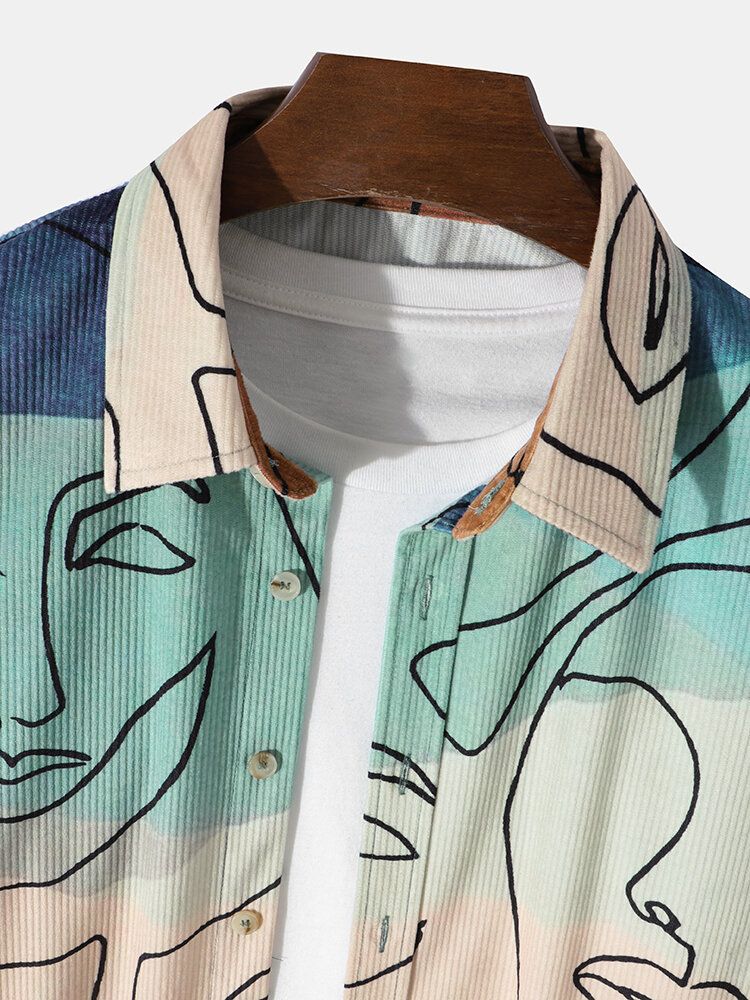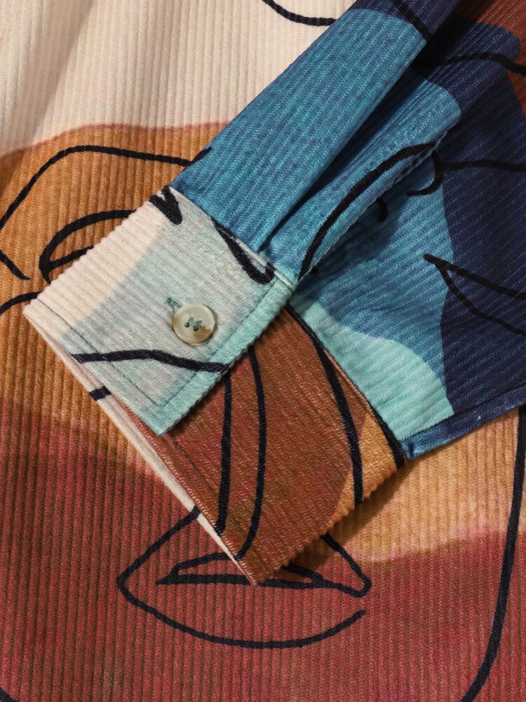 Mens Corduroy Art Printed Colorful Long Sleeve Front Buttons Shirts