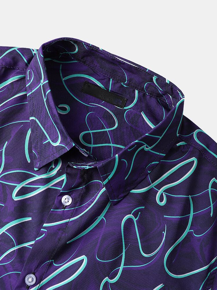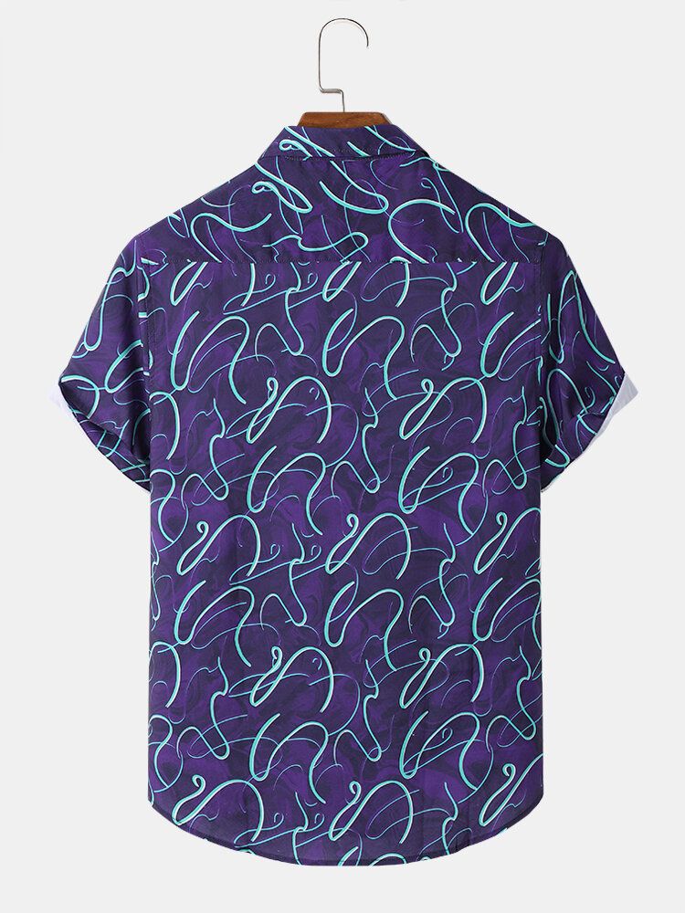 Men Funny Print Magic Line Short Sleeve Casual Shirts