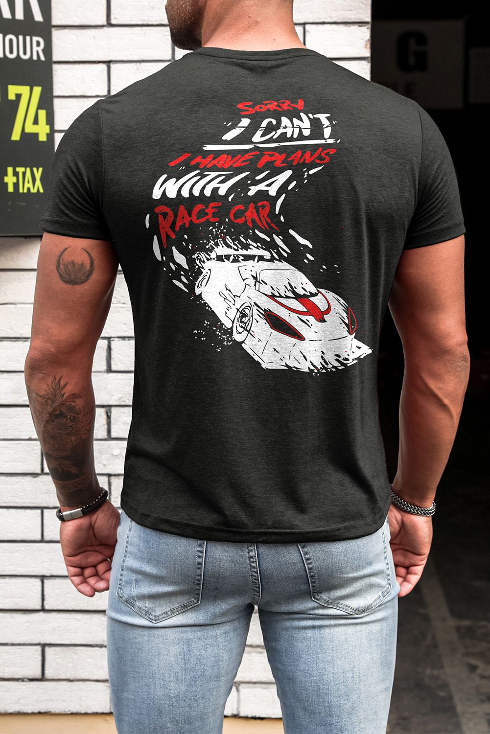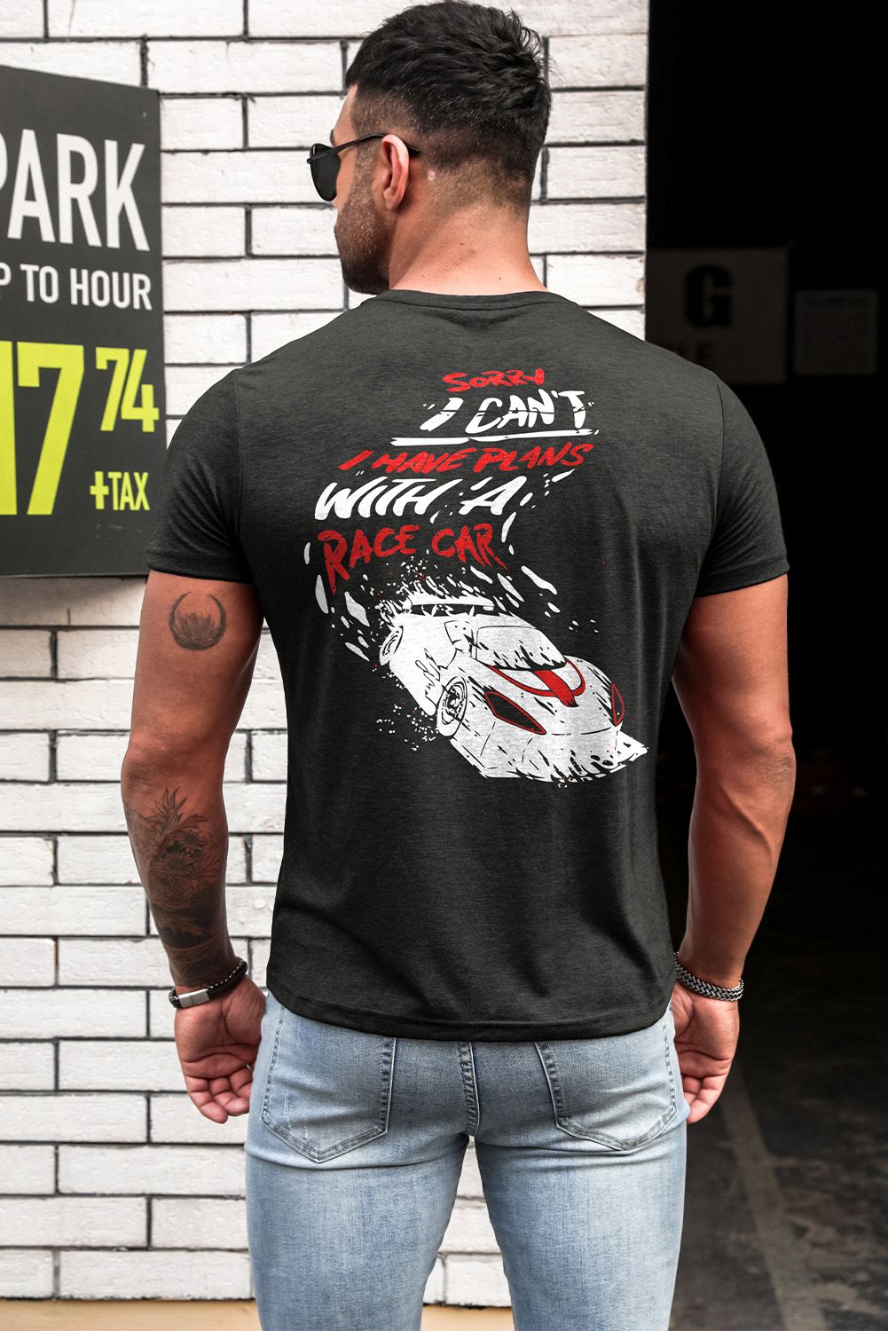 Racing Vehicle Letter Print Slim Fit Men'sGraphic Tee