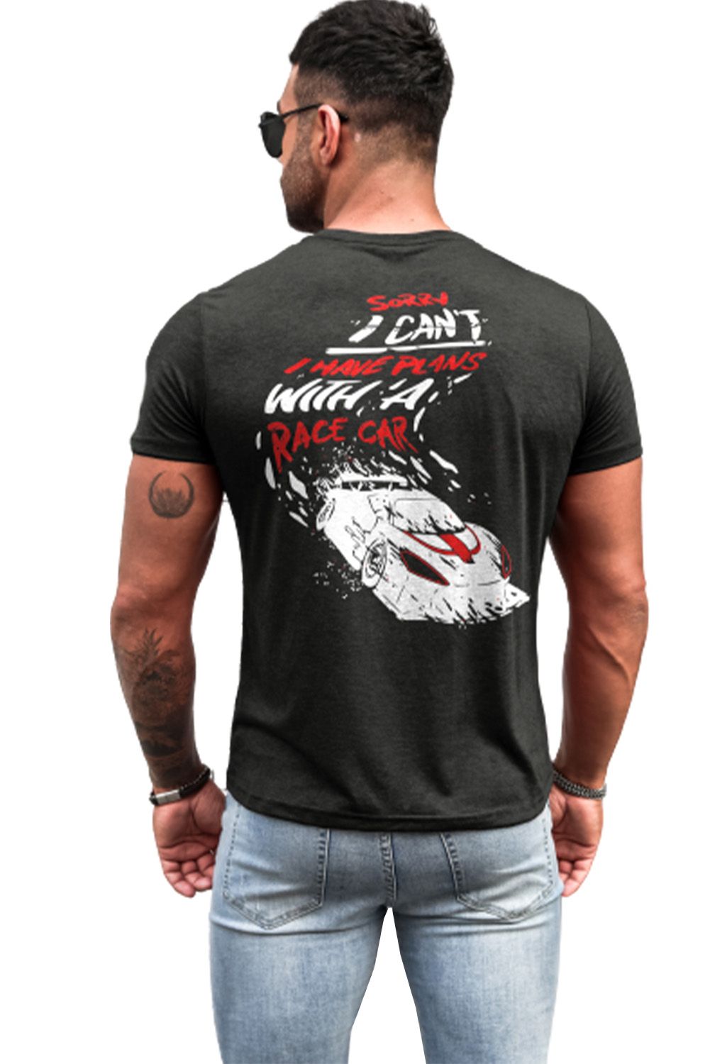 Gray Racing Vehicle Letter Print Slim Fit Men's Graphic Tee