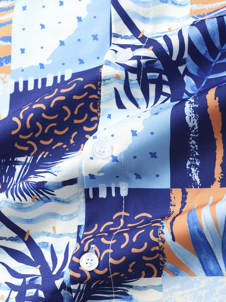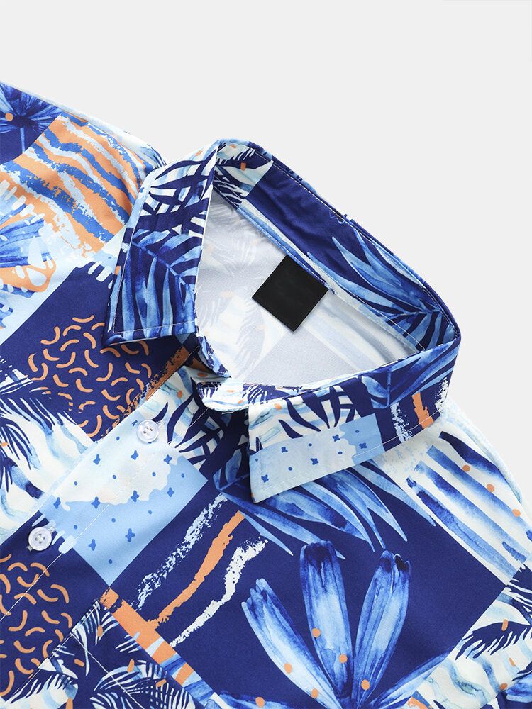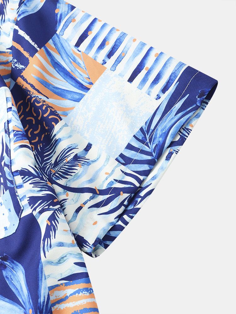 Mens Tropical Plant Graphics Holiday Short Sleeve Shirts With Pocket