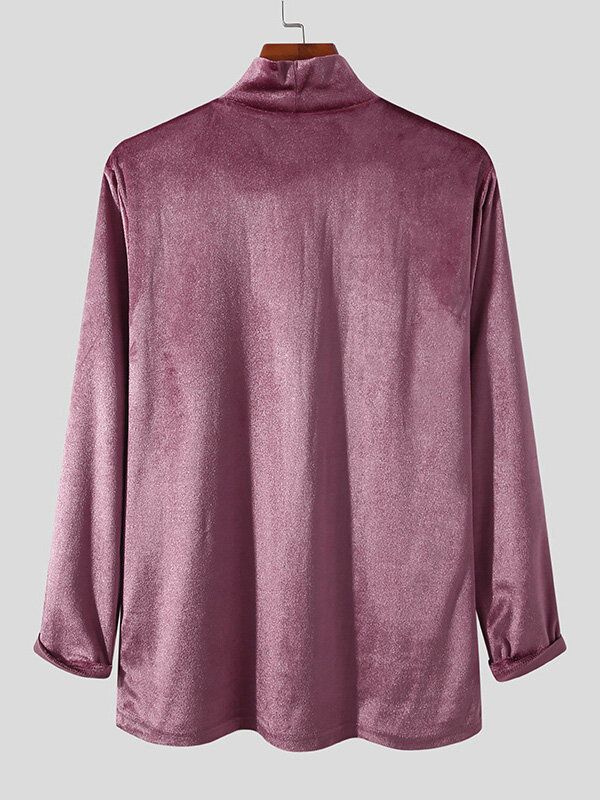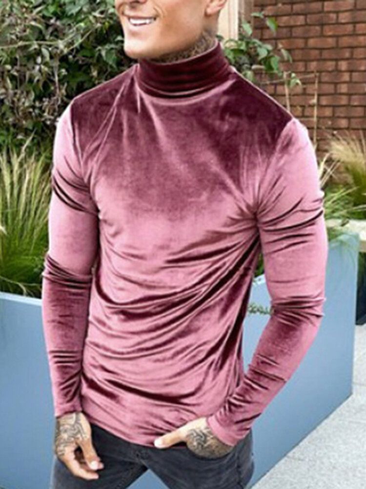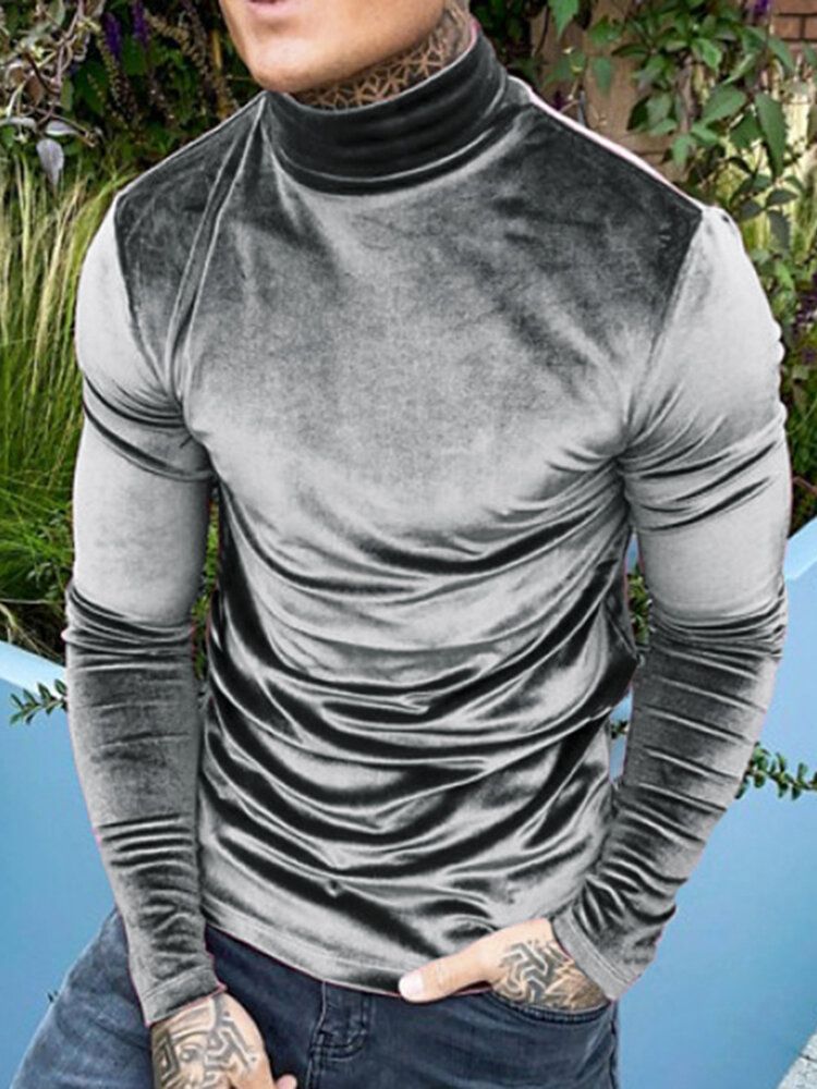 Men Suede High Neck Long Sleeve T-Shirt