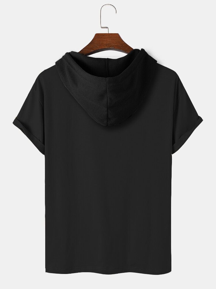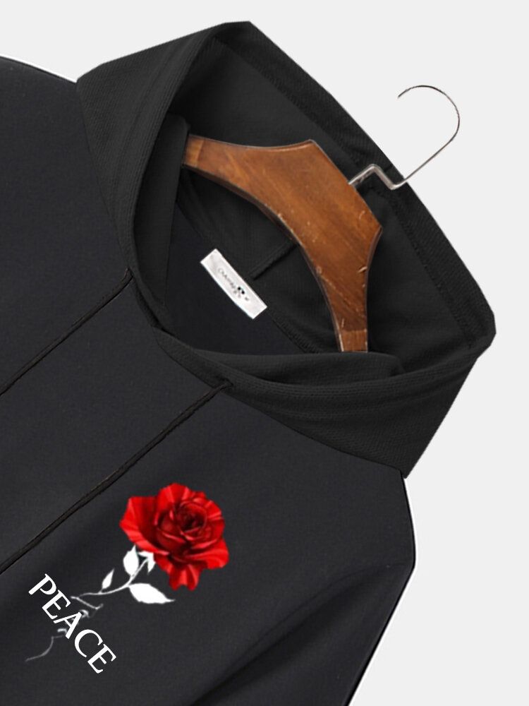 Mens Peace Rose Print Short Sleeve Drawstring Hooded T-Shirts