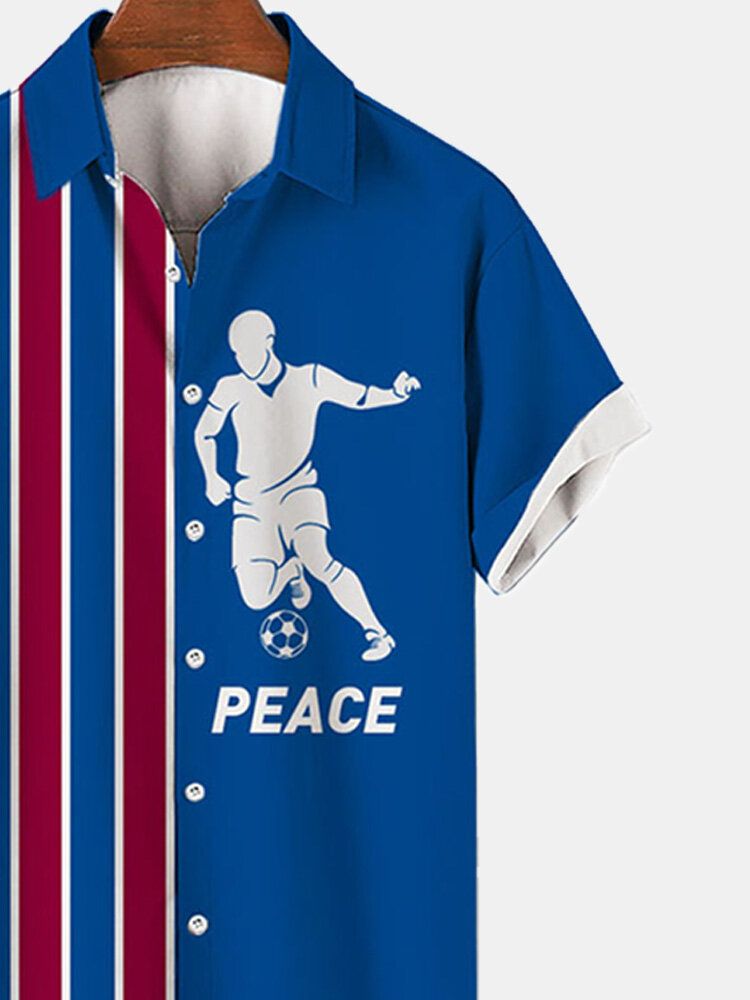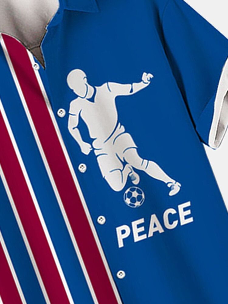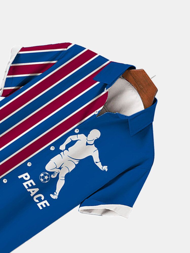 Mens Striped World Soccer Print Patchwork Short Sleeve Shirts