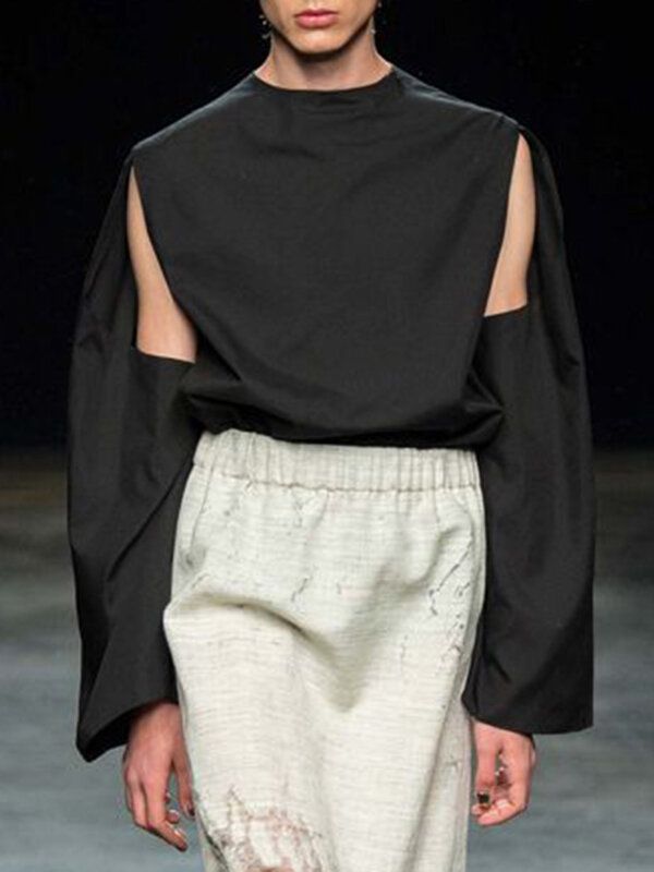 Mens Cutout Sleeves Round Neck Loose T-shirts