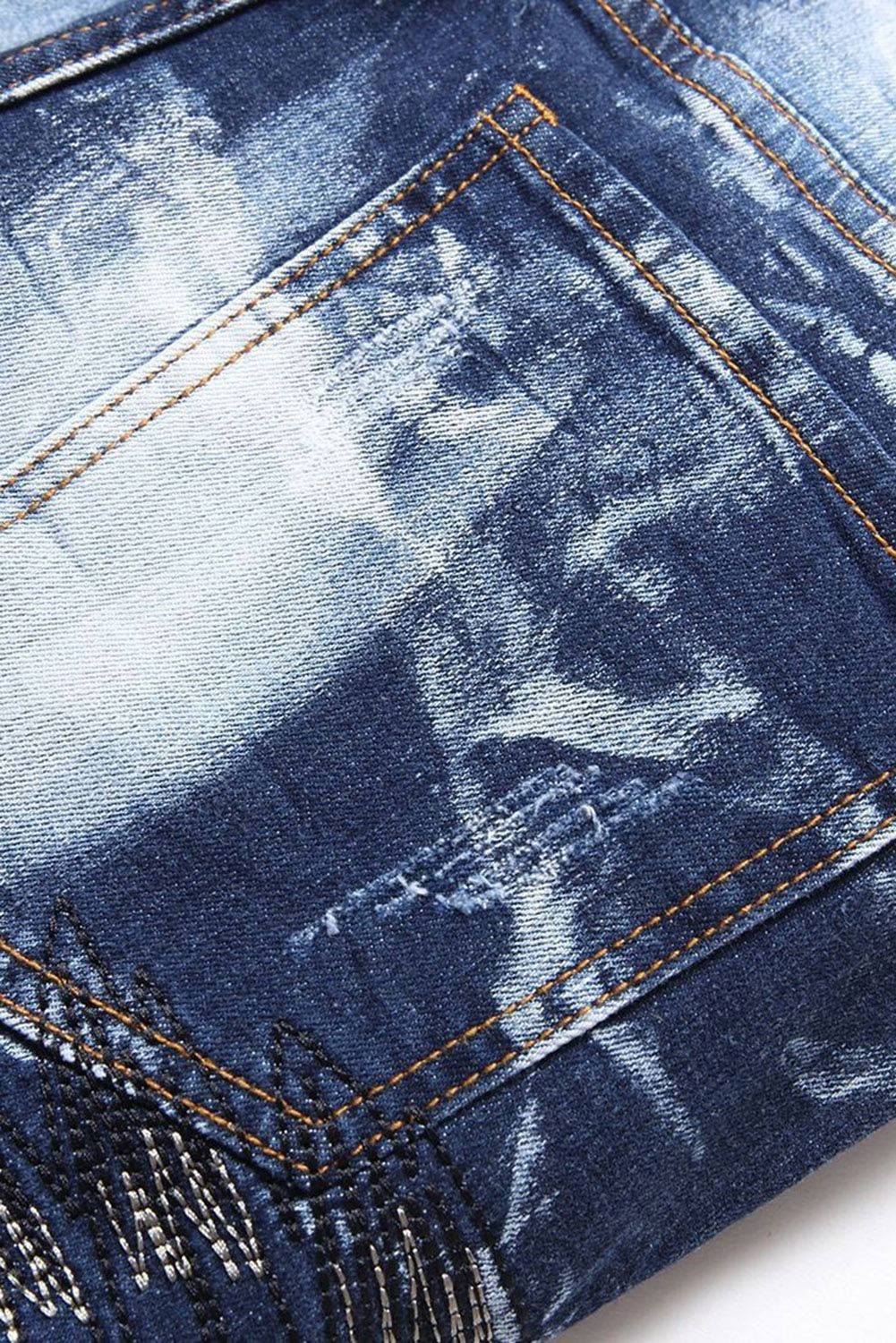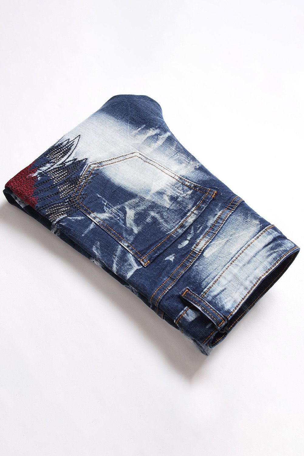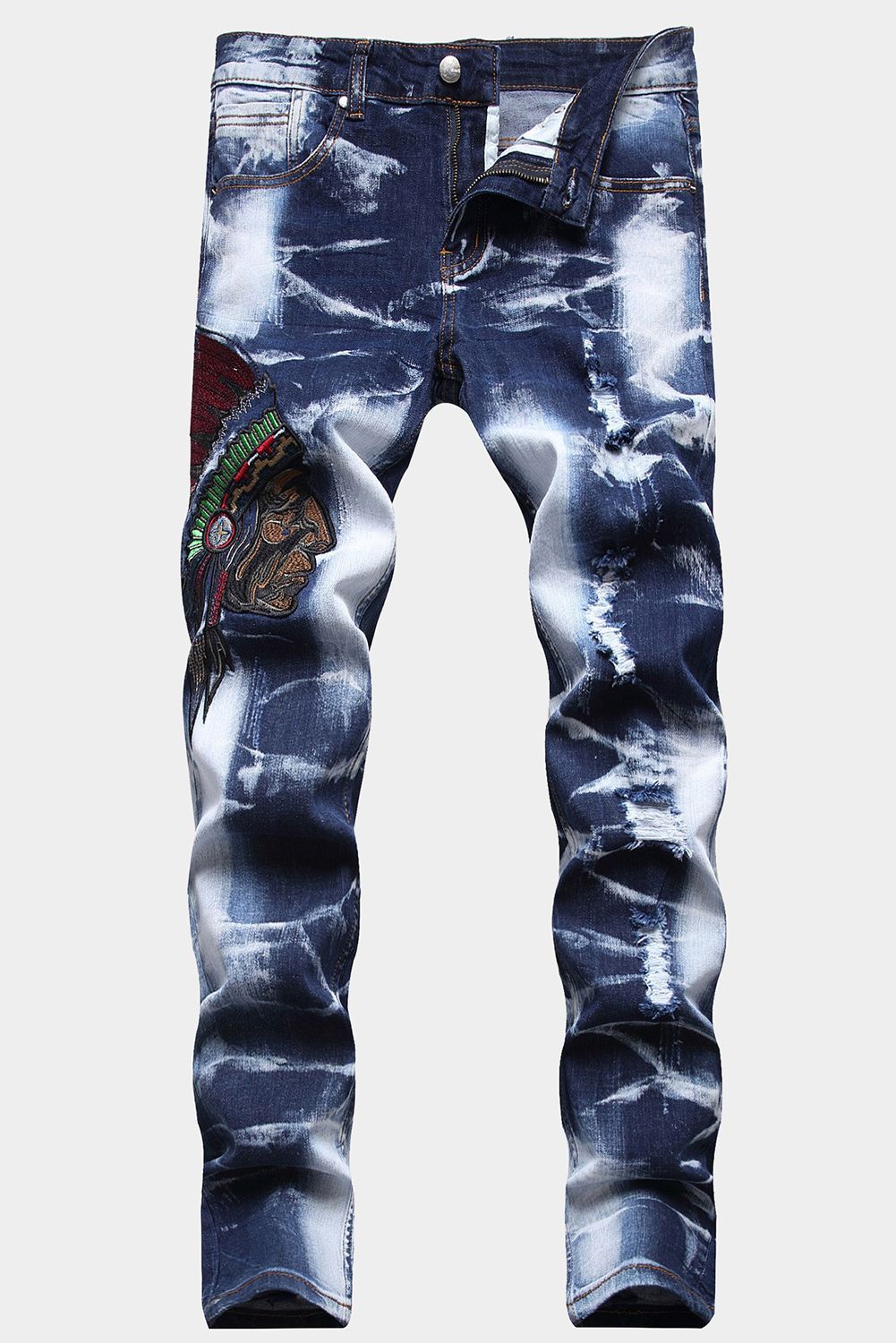 Men's Washed Indian Pattern Embroidery Slim-fit Jeans