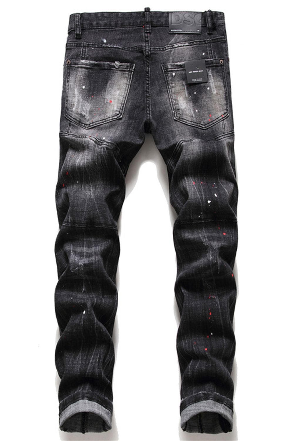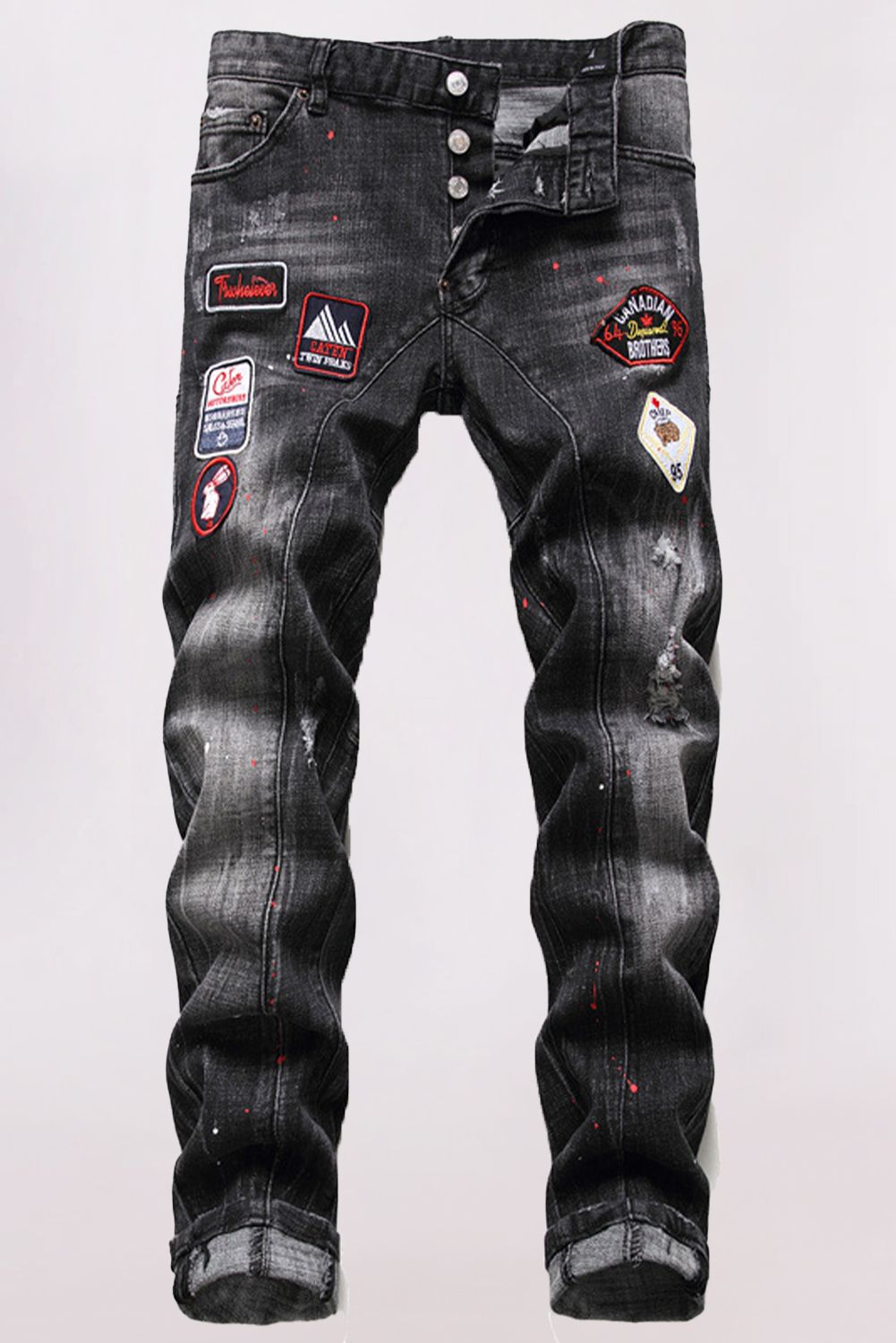 Men's Washed Pattern Patchwork Buttons Distressed Jeans