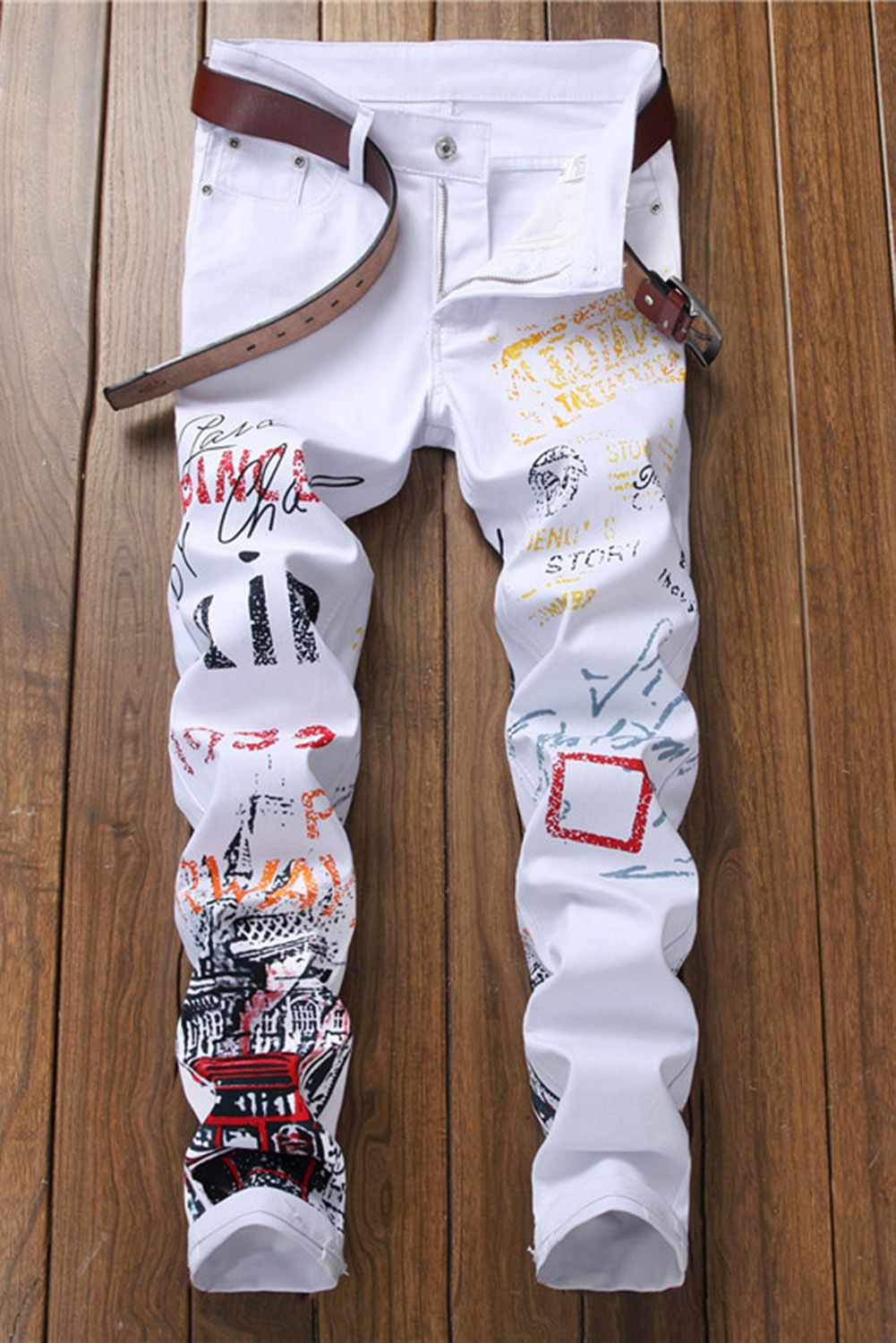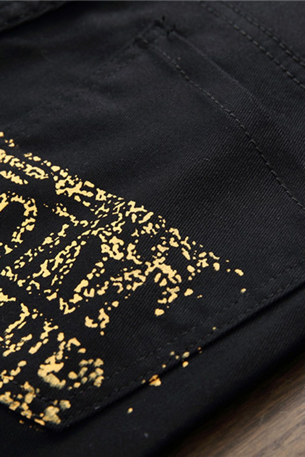 Black Letter Printed Buttoned Straight Leg Men's Jeans