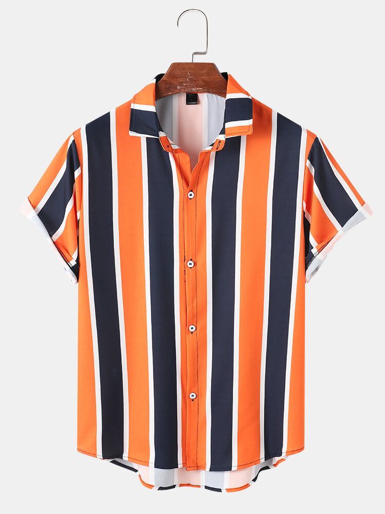 Mens Holiday Wide Striped Button Up Short Sleeve Shirts