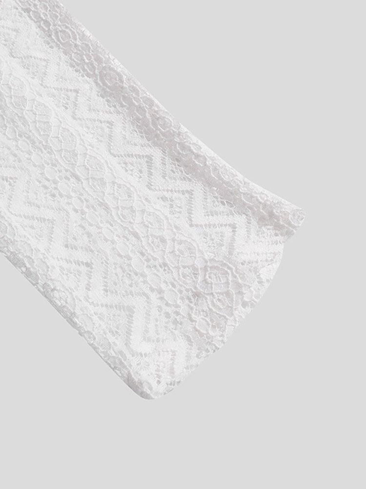 Mens See-Through Lace Crochet Ruffle Front Shirt
