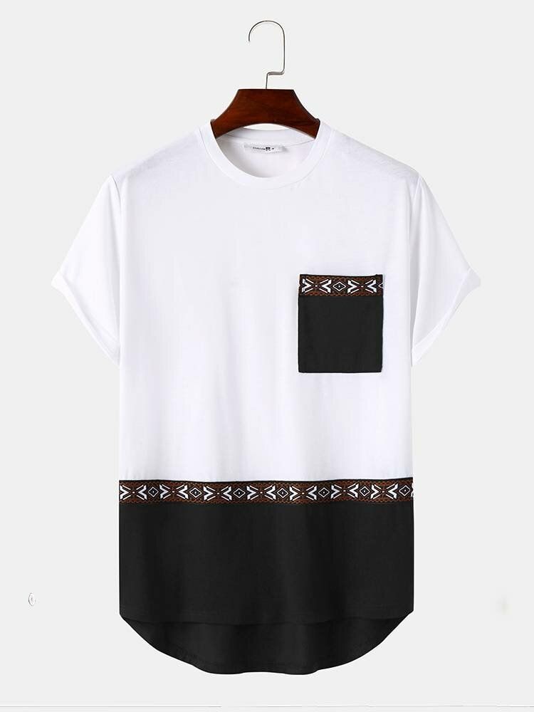 Mens Ethnic Matching Chest Pocket Curved Hem Short Sleeve T-Shirts