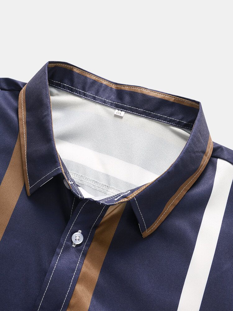 Mens Vertical Striped Button Up Casual Short Sleeve Shirts